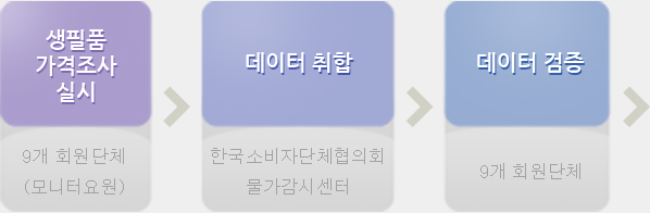 조사된 자료를 토대로 생필품 가격 정보를 소비자에게 제공함으로써 소비자의 합리적인 구매 활동을 유도하고, 가격변동 품목에 대해서는 문제 제기 및 해결 방안을 모색함.